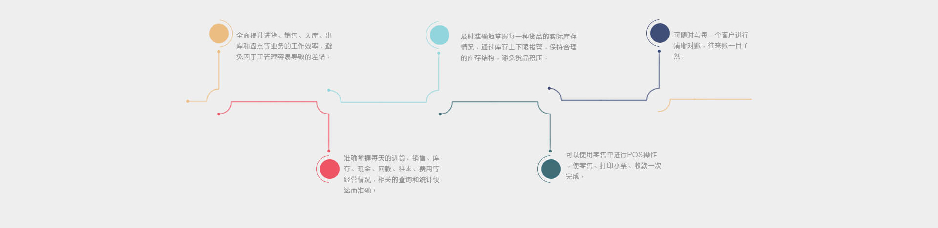 準(zhǔn)確掌握每天的進(jìn)貨、銷售、庫存、現(xiàn)金、回款、往來、費(fèi)用等經(jīng)營(yíng)情況,相關(guān)的查閱和統(tǒng)計(jì)快速而準(zhǔn)確。